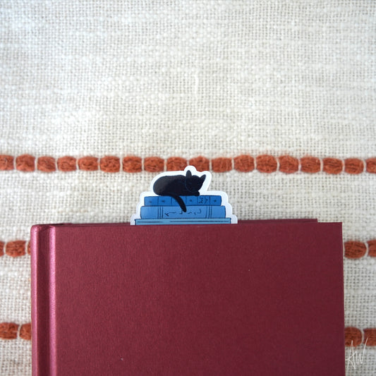 Cat on Books Blue | Bookmark