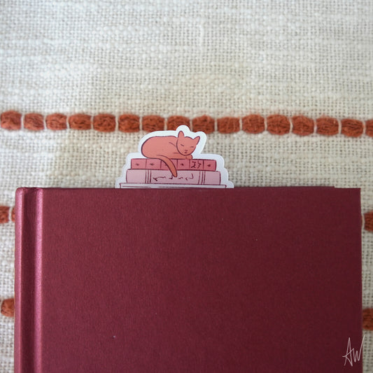 Cat on Books Pink | Bookmark